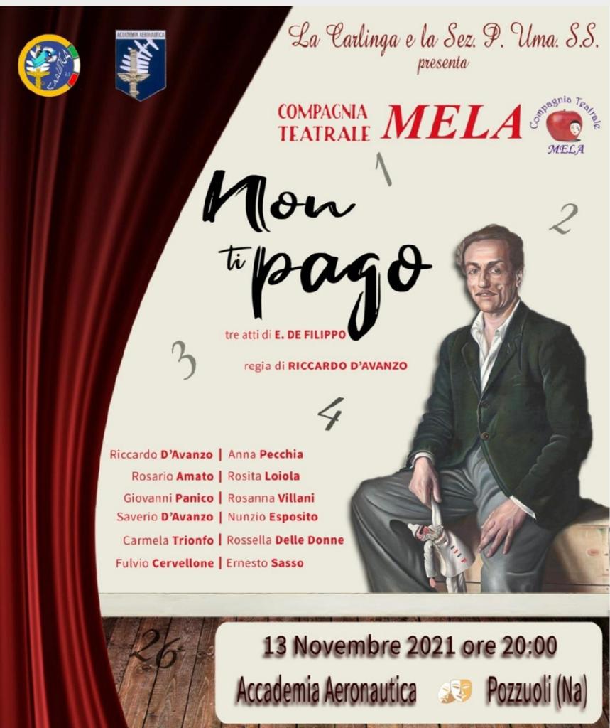 Grazie di cuore a tutti coloro che, tramite questa bellissima rappresentazione teatrale “Non ti Pago” tenutasi il 13 novembre 2021 presso l’Accademia Aeronautica di Pozzuoli (NA), hanno raccolto 1.000,00 € per sostenere le famiglie che si curano fuori regione.